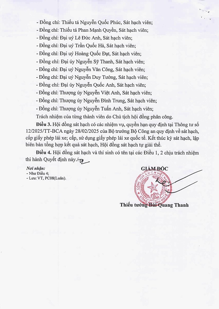 1. Quyết định tổ chức kỳ sát hạch lái xe