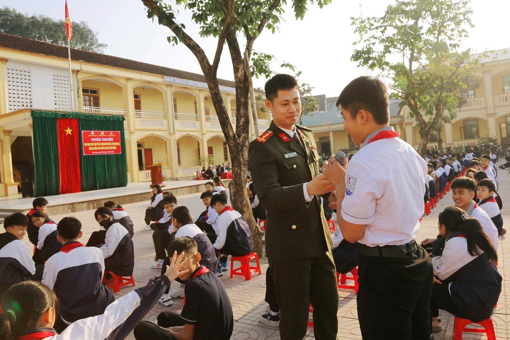 Tại buổi tuyên truyền, Công an xã phổ biến quy định pháp luật, chế tài xử lý; đồng thời phân tích nguyên nhân, hậu quả và tác hại của việc không chấp hành pháp luật trong lứa tuổi học sinh. Chương trình được tổ chức với hình thức phong phú, sinh động, nội dung gần gũi, sát với thực tiễn học đường, giúp học sinh dễ tiếp thu và ghi nhớ.