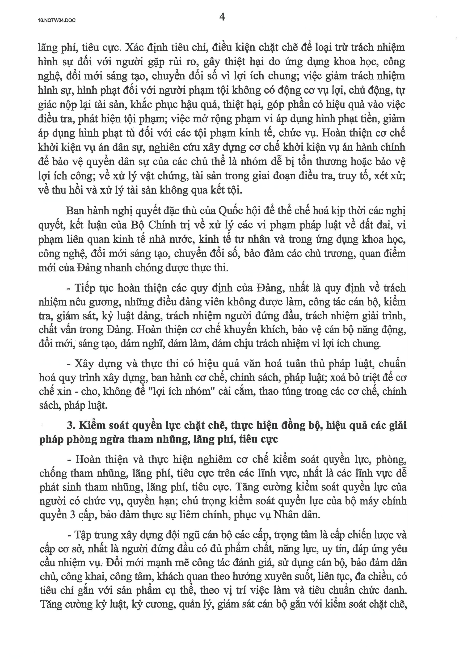 Cổng Thông tin điện tử Chính phủ trân trọng giới thiệu toàn văn Nghị quyết số 04-NQ-TW: