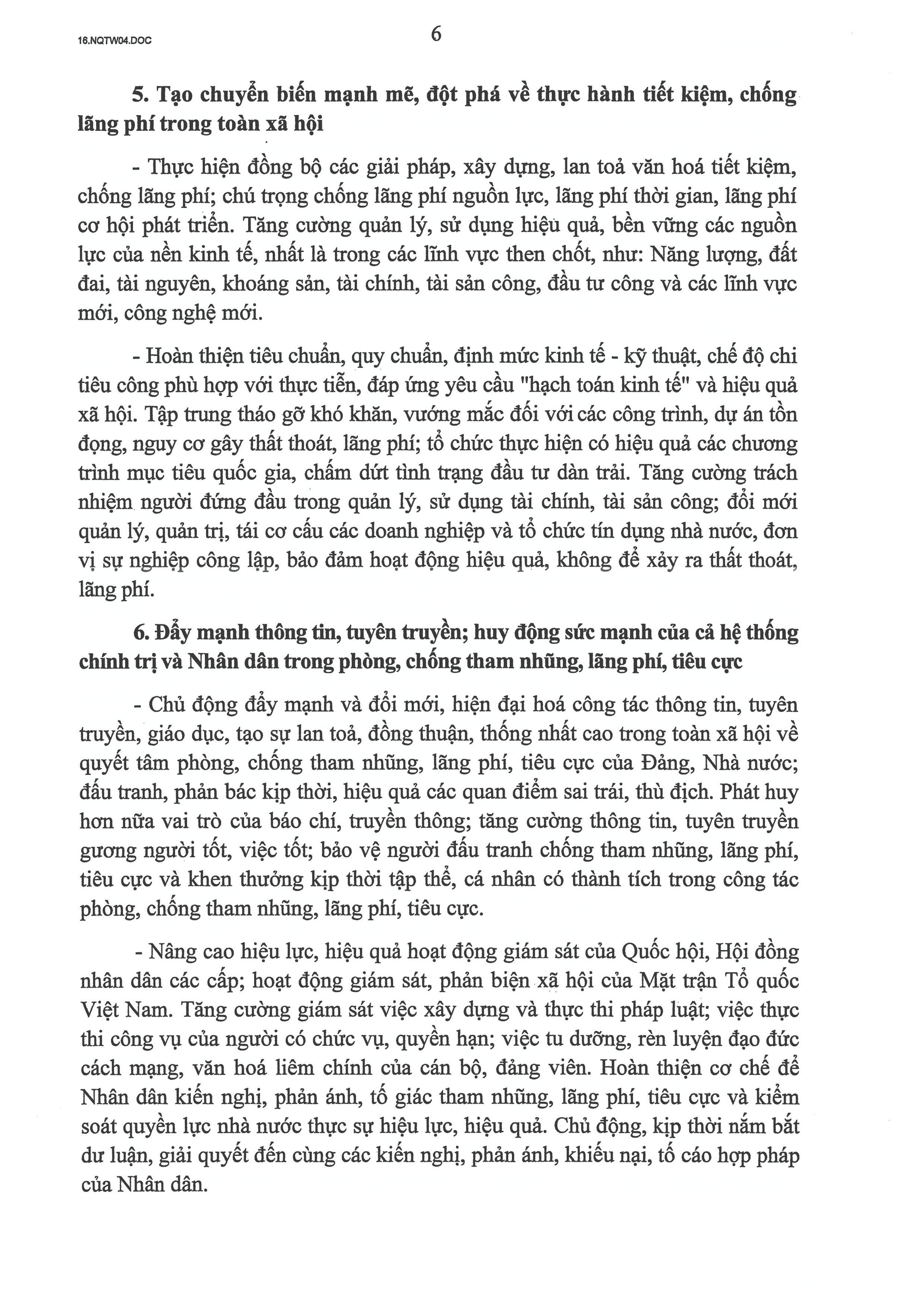 5. Tạo chuyển biến mạnh mẽ, đột phá về thực hành tiết kiệm, chống lãng phí trong toàn xã hội