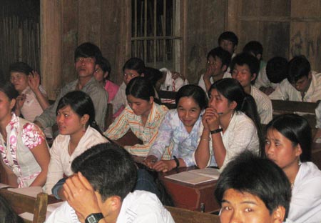 Vậy mà tối đến, cả bản lại kéo nhau đến lớp học bổ túc văn hoá. Học dưới ánh sáng lờ mờ nhưng sự hăng hái và chăm chú của họ thì giáo viên trong thành phố nào trông thấy cũng không khỏi phát thèm. Cách có 45km so với trung tâm thành phố mà đời sống của con người nơi đây còn lạc hậu quá. Không nói đâu xa, ngay tại bản Nhạp, một bản có tới hơn 200 hộ dân mà không có nổi 10 người học đến cấp ba.