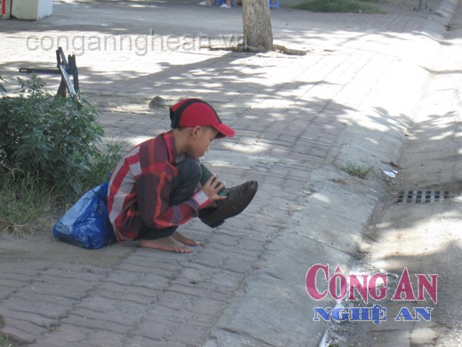 Đánh giày, công việc hàng ngày của Tuấn ở TP Vinh