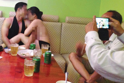 Nhận ra sự chơi vơi của chúng tôi, quản lý điều hai "người mẫu" cao ráo lịch sự liên tục mở cửa vào cụng ly rồi hú hò theo tiếng nhạc, gây náo loạn không khí trong phòng.
