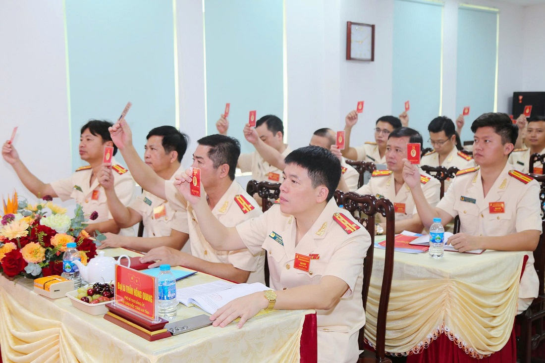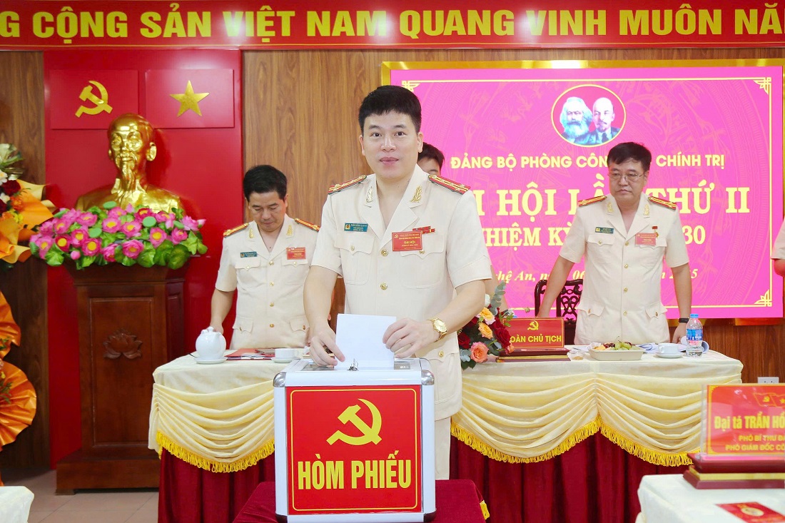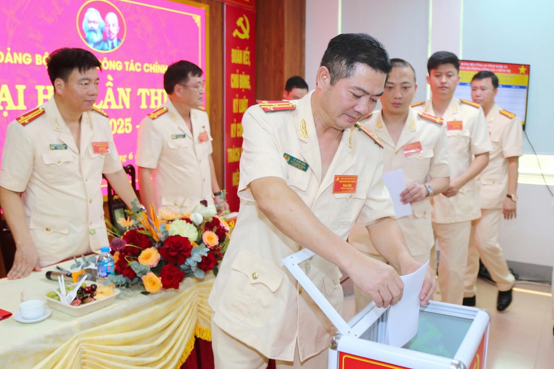 Với tinh thần dân chủ, khách quan và trách nhiệm, Đại hội đã bầu Ban Chấp hành Đảng bộ nhiệm kỳ 2025 - 2030 gồm 07 đồng chí. Đồng chí Thượng tá Nguyễn Trọng Khanh, Trưởng phòng Công tác chính trị tiếp tục được tín nhiệm tái cử giữ chức vụ Bí thư Đảng ủy. Đại hội cũng đã bầu đoàn đại biểu dự Đại hội đại biểu Đảng bộ Công an tỉnh lần thứ XV, nhiệm kỳ 2025 - 2030.
