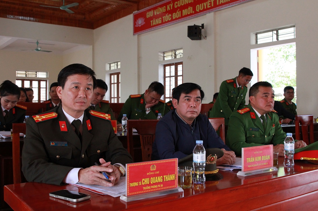 | Đồng chí Thượng tá Chu Quang Thành, Phó Chủ nhiệm Ủy ban Kiểm tra Đảng ủy Công an tỉnh phát biểu tại Hội nghị |