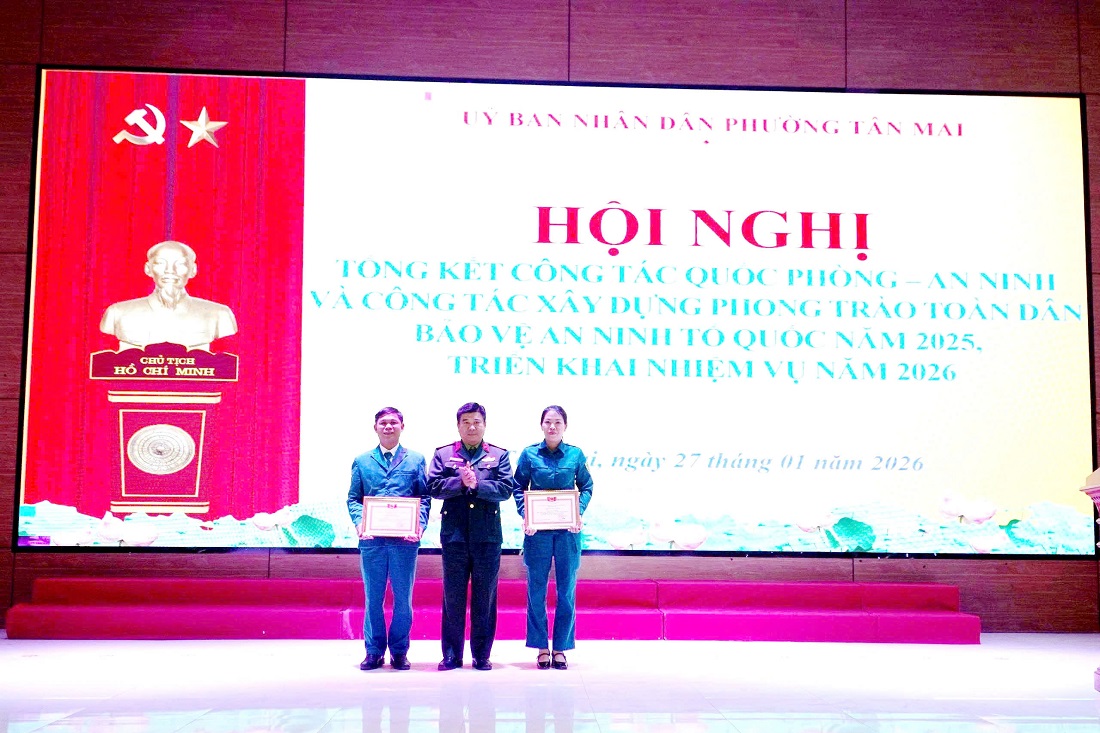 Năm 2026, phường Tân Mai tập trung xây dựng lực lượng vũ trang vững mạnh toàn diện; bảo đảm ANTT; chủ động phòng ngừa, đấu tranh với tội phạm, nhất là dịp lễ, Tết và sự kiện chính trị quan trọng; đồng thời đẩy mạnh giáo dục quốc phòng - an ninh, nâng cao nhận thức, trách nhiệm của người dân.