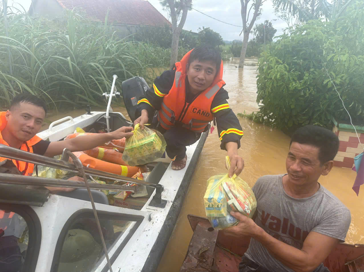 Khó khăn chồng chất, phương châm “4 tại chỗ” được chính quyền địa phương khẩn cấp kích hoạt. Lực lượng Công an xã cùng các lực lượng chức năng gấp rút dùng các phương tiện chuyên dụng để cố gắng tiếp cận bà con vùng ngập sâu.