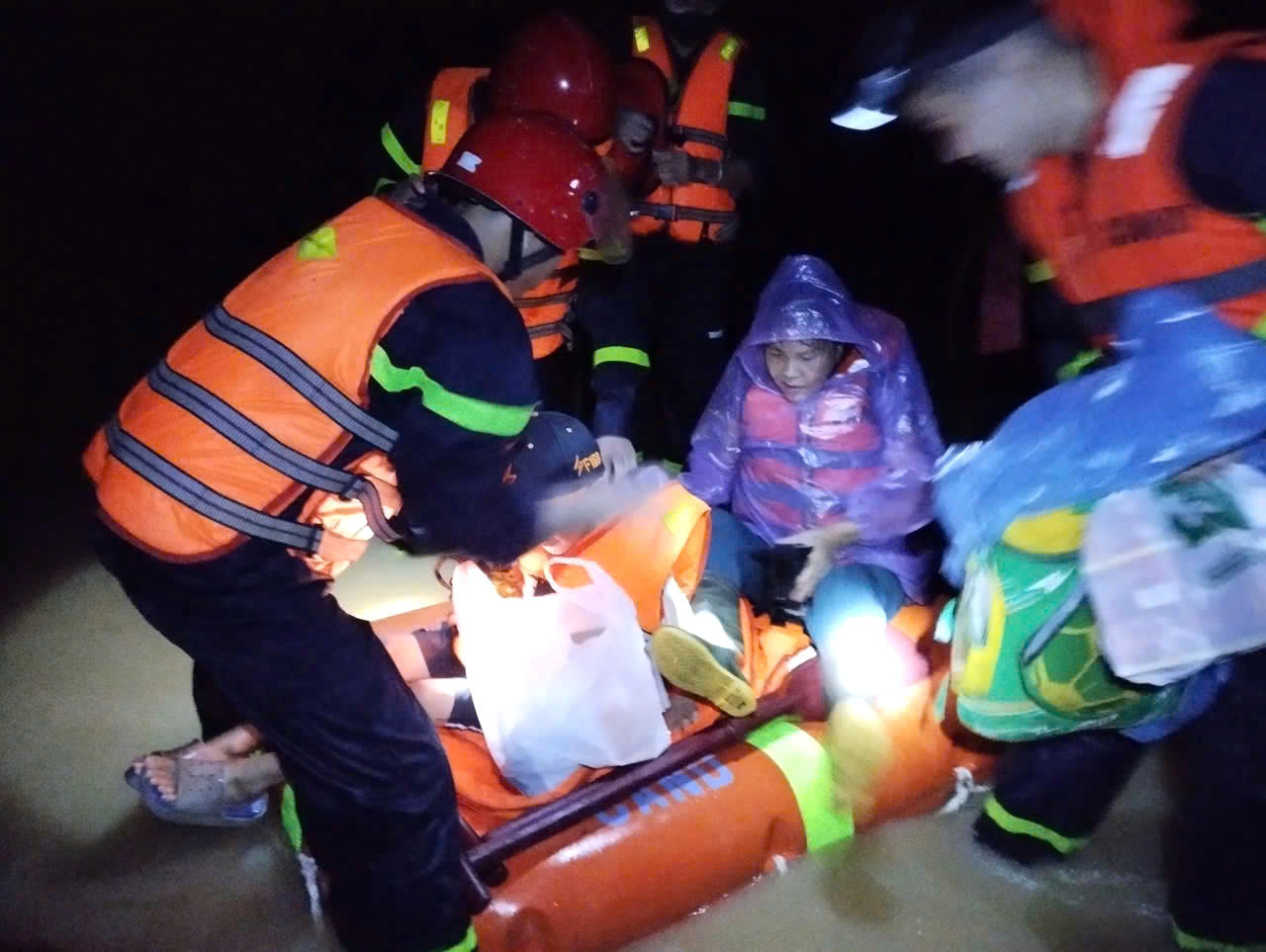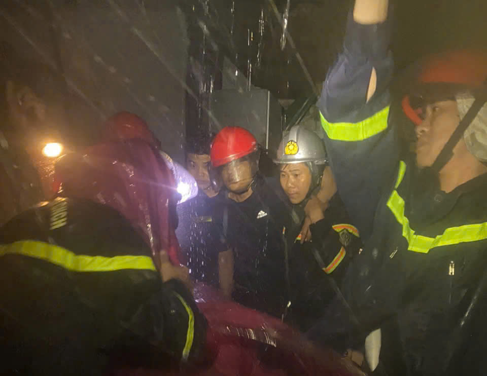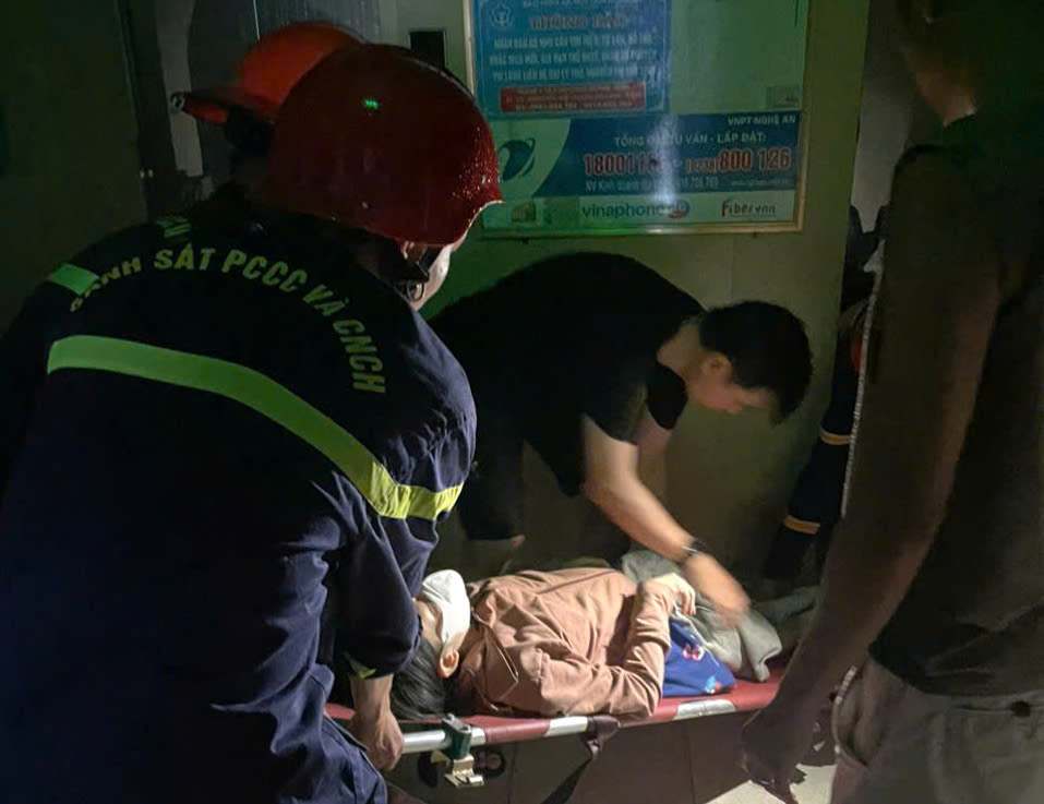 Ở phường Thành Vinh, một phụ nữ mang thai vỡ ối trong căn hộ tầng 18 tòa nhà CT2, đường Nguyễn Quốc Trị. Do tình hình mưa bão phức tạp không thể đi được, trong tình trạng khẩn cấp, 6 chiến sĩ Đội CC&CNCH số 1 mang cáng cứu thương, dây an toàn, đèn pin, vừa chiếu sáng, vừa dìu nạn nhân xuống 18 tầng cầu thang. Hơn một giờ sau, sản phụ được đưa đến Bệnh viện Sản Nhi Nghệ An an toàn.