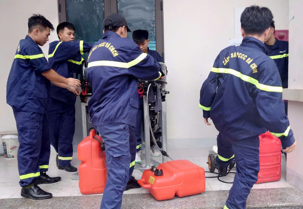 | Lực lượng Cảnh sát PCCC và CNCH trực 100% quân số. Thiết bị, phương tiện được kiểm tra, sẵn sàng ứng phó với mọi tình huống khi bão số 10 đổ bộ. Các tổ công tác được phân công nhiệm vụ cụ thể đến từng địa bàn trọng điểm, mọi phương án được tính trước, không để bị động, bất ngờ |