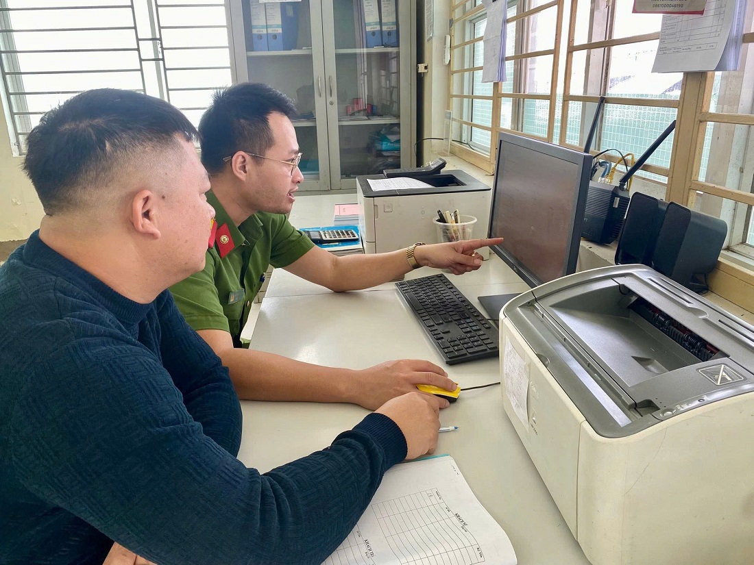 | Cán bộ Phòng Cảnh sát PCCC và CNCH hướng dẫn người dân cách cập nhật cơ sở dữ liệu PCCC trên phần mềm khai báo |