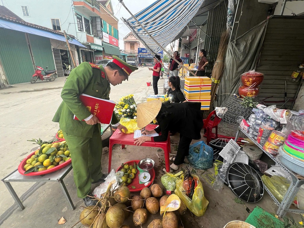 | Công an xã Thiên Nhẫn tuyên truyền, nhắc nhở hộ kinh doanh, buôn bán chấp hành quy định về hành lang ATGT đường bộ |