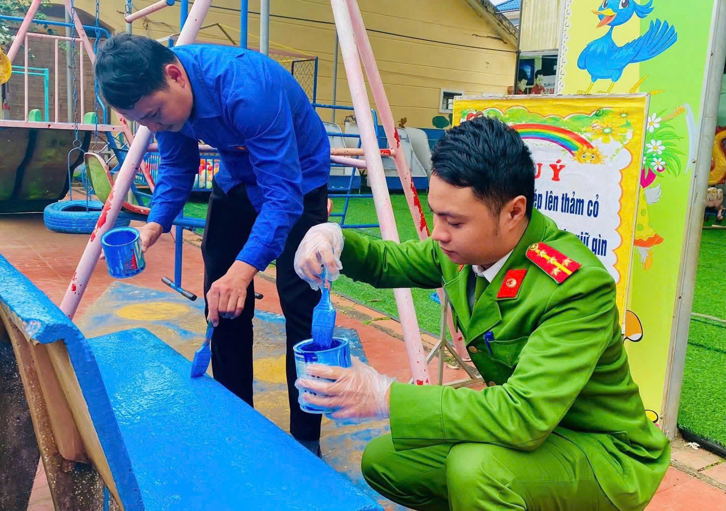 (Congan.nghean.gov.vn)-Nhằm đảm bảo trật tự an toàn giao thông và mỹ quan khu vực trường học, ngày 04/12/2025, Công an xã Nghĩa Mai phối hợp Đoàn xã Nghĩa Mai và Chi đoàn Trường mầm non Nghĩa Minh kẻ vạch phân luồng để xe tại khu vực cổng trường.