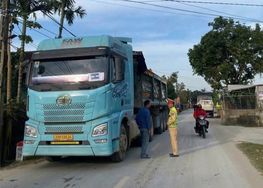 (Congan.nghean.gov.vn)-Trước tình trạng xe tải trọng lớn chở cát, đất và vật liệu xây dựng lưu thông tiềm ẩn nguy cơ mất an toàn trên các tuyến quốc lộ, Công an xã Thuần Trung đã tăng cường phối hợp tuần tra, kiểm soát, xử lý nghiêm các phương tiện vi phạm.