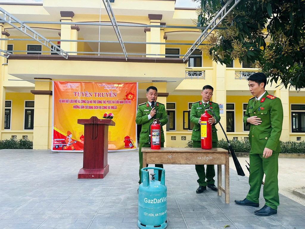 Tại buổi tuyên truyền, Công an xã phổ biến quy định của pháp luật về quản lý, sử dụng vũ khí, vật liệu nổ và công cụ hỗ trợ; tuyên truyền, giáo dục học sinh không tàng trữ, sử dụng vũ khí tự chế, đồ chơi nguy hiểm; vận động giao nộp vũ khí, vật liệu nổ, công cụ hỗ trợ trái phép. Bên cạnh đó, tuyên truyền kiến thức cơ bản về phòng cháy, chữa cháy và cứu nạn, cứu hộ; hướng dẫn kỹ năng phòng ngừa cháy, nổ, kỹ năng thoát nạn, xử lý tình huống khi xảy ra sự cố cháy, nổ, tai nạn tại trường học và trong gia đình.