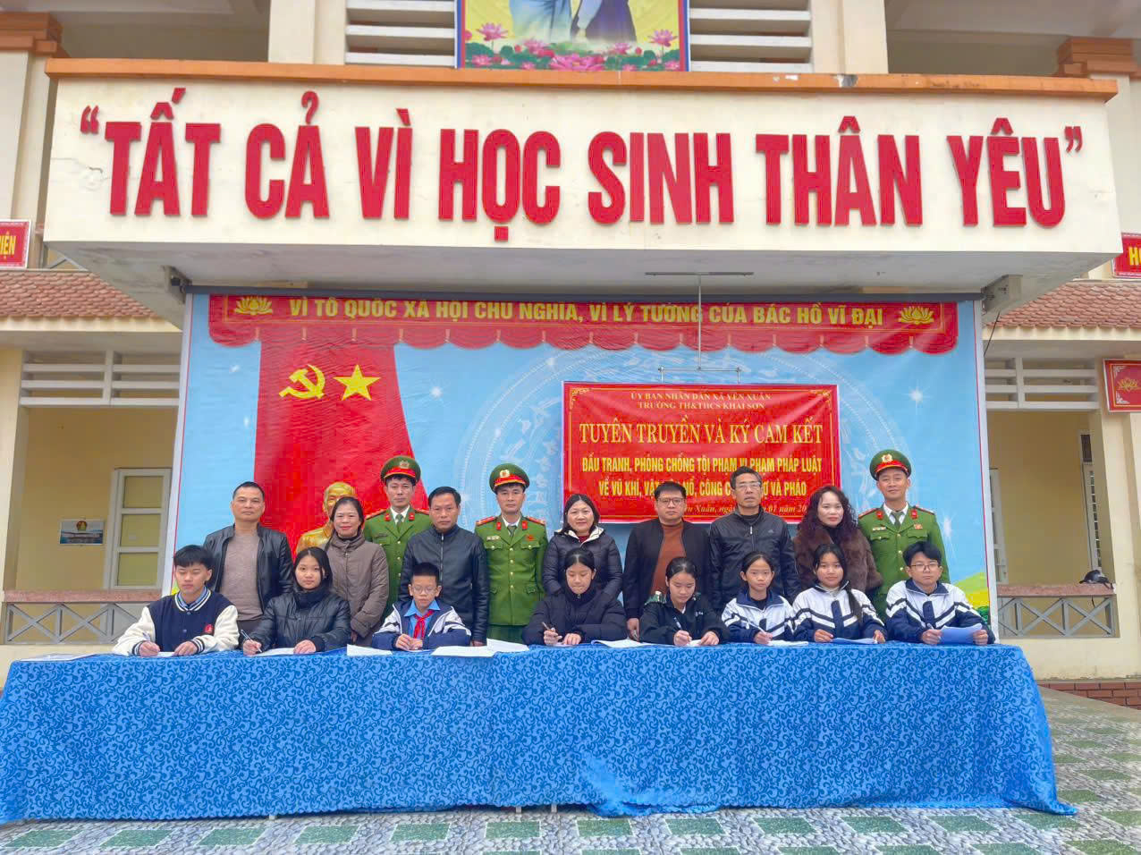 Tại buổi tuyên truyền, các lớp học và giáo viên, ban giám hiệu các trường đã ký cam kết thực hiện nghiêm các quy định của pháp luật về phòng chống pháo nổ, an toàn giao thông và các tệ nạn xã hội.