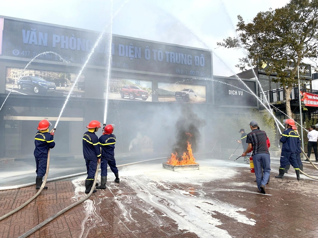 | Thực tập phương án chữa cháy tại Văn phòng Ford Thái Hòa, phường Thái Hòa |