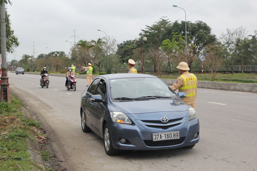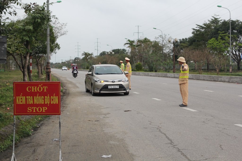 Trong cao điểm trước, trong và sau Tết, lực lượng CSGT Công an tỉnh Nghệ An duy trì tuần tra, kiểm soát thường xuyên, liên tục trên tuyến, địa bàn trọng điểm. Đội, trạm CSGT phối hợp với Công an phường, xã tổ chức tuần tra theo kế hoạch, tập trung tại khu vực nhà hàng, quán ăn, khu vui chơi, giải trí; tuyến quốc lộ, tỉnh lộ, đường liên xã và những điểm thường xảy ra tai nạn giao thông.