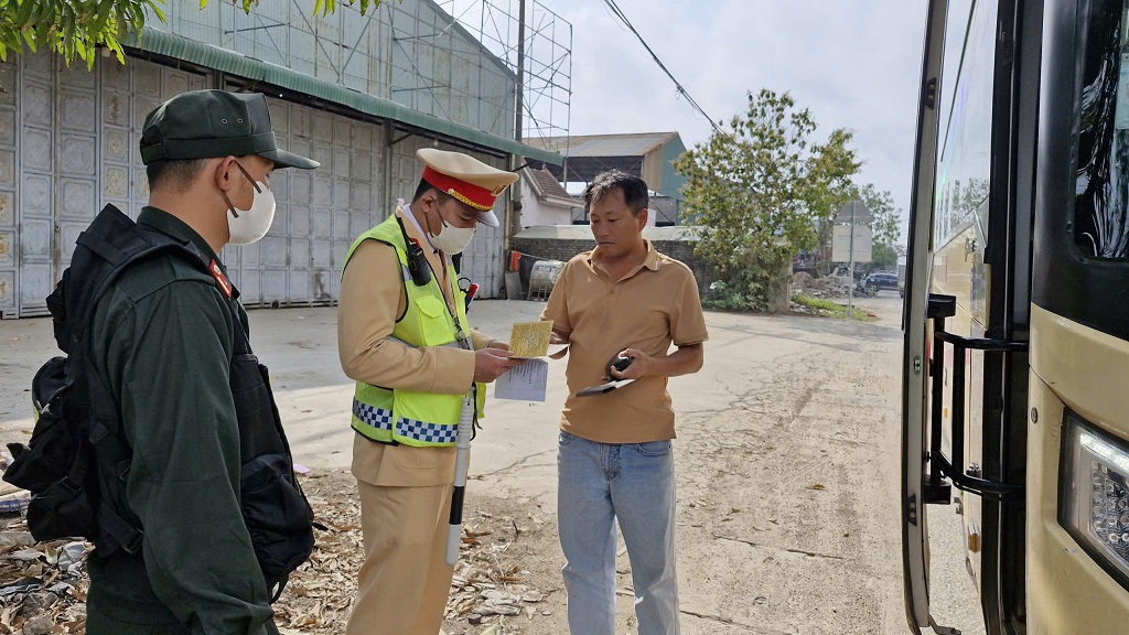 Để bảo đảm trật tự an toàn giao thông dịp Tết Nguyên đán, lực lượng Cảnh sát giao thông huy động tối đa cán bộ, chiến sĩ, phương tiện, tăng cường tuần tra, kiểm soát khép kín địa bàn. Qua kiểm tra, phát hiện, lập biên bản, xử lý nhiều trường hợp xe khách vi phạm lỗi phổ biến như: chạy quá tốc độ, chở quá số người cho phép, dừng đỗ hoặc đón trả khách không đúng nơi quy định…