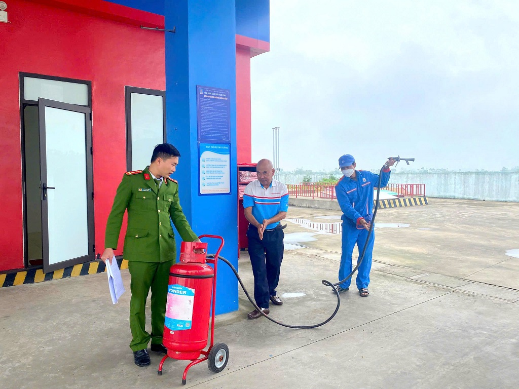 | Cảnh sát PCCC&CNCH kiểm tra cửa hàng xăng dầu ở xã Đại Huệ |