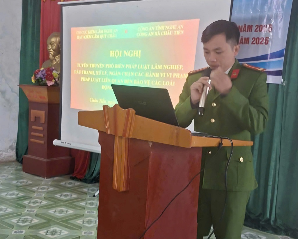 (Congan.nghean.gov.vn)-Thực hiện kế hoạch của Công an tỉnh Nghệ An, Công an xã Châu Tiến triển khai đồng bộ nhiều biện pháp tuyên truyền, kiểm tra và xử lý vi phạm liên quan đến bảo vệ động vật hoang dã và nguồn lợi thủy sản.