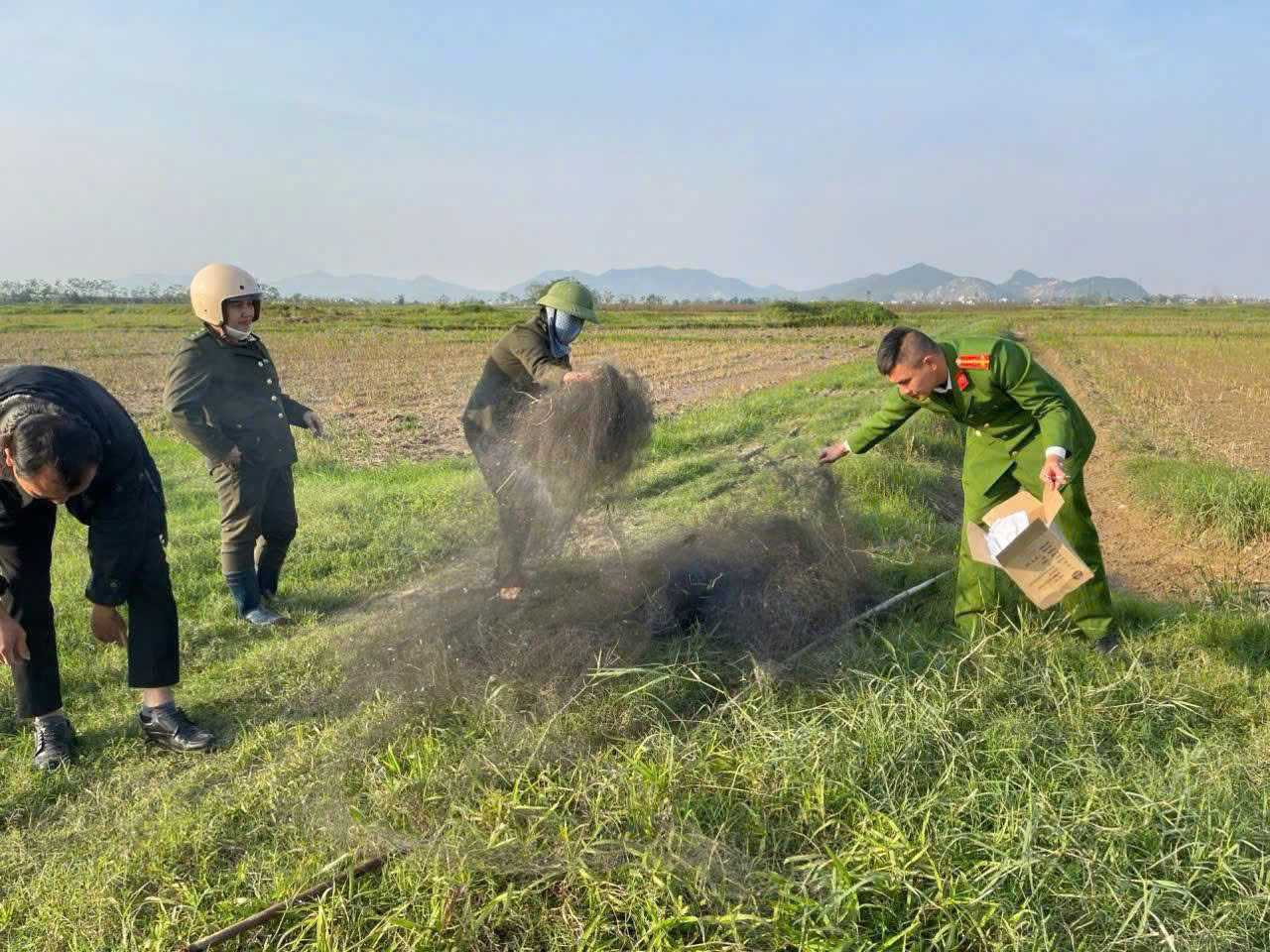 Trước tình hình trên, Công an xã Hưng Nguyên Nam đã tham mưu các cấp, các ngành tiến hành đồng bộ nhiều biện pháp để phòng ngừa, đấu tranh, ngăn chặn hành vi săn bắt chim trời, giăng lưới bẫy, đánh bắt thủy sản tận diệt, buôn bán động vật hoang dã trái phép. Điển hình ngày 02/12/2025, Công an xã phối hợp lực lượng Kiểm lâm và các lực lượng khác tiến hành thu giữ và tiêu huỷ 700m lưới giăng cùng 20 cọc tre dùng để bẫy chim. Trước đó, ngày 25/11/2025, Công an xã Hưng Nguyên Nam phối hợp lực lượng Kiểm lâm thu giữ, tiêu huỷ 250m lưới giăng cùng 20 cọc tre, cọc inox dùng để bẫy chim.