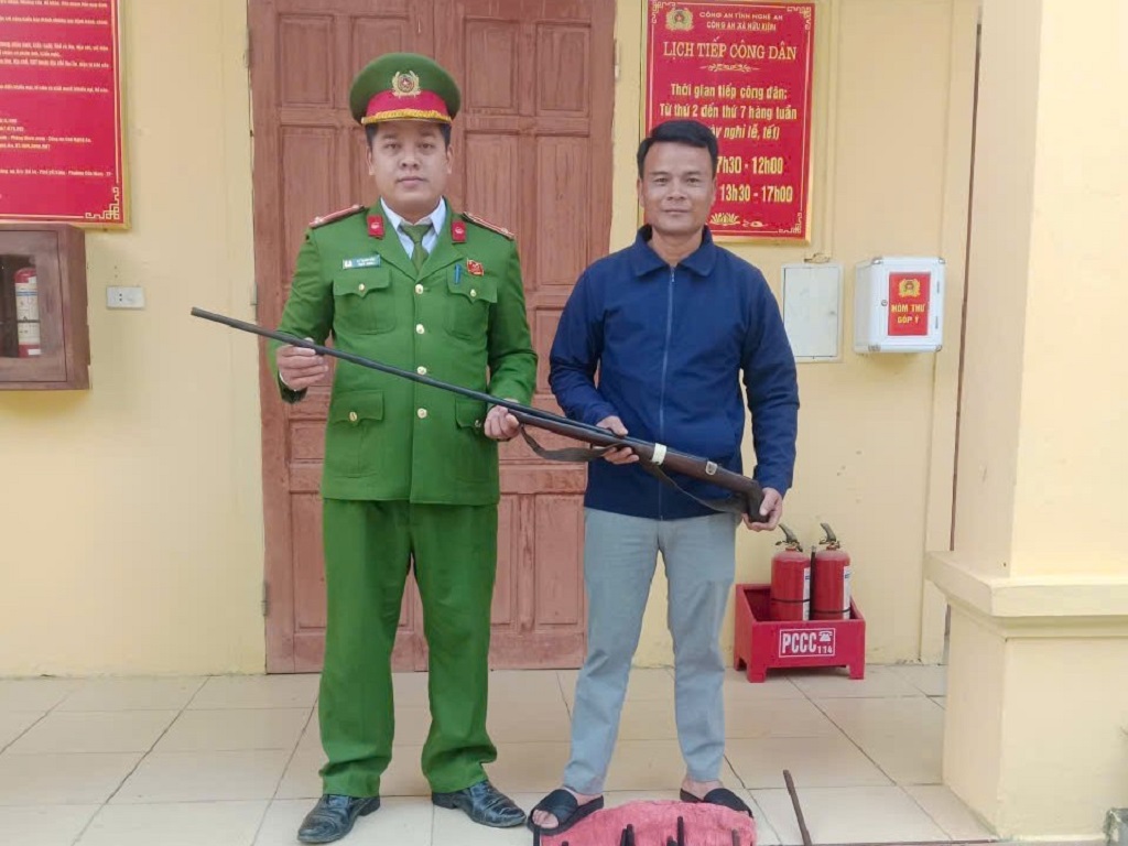 (Congan.nghean.gov.vn)-Thực hiện cao điểm tấn công, trấn áp các loại tội phạm theo kế hoạch của Công an tỉnh Nghệ An, trong các ngày 15 và 16/12/2025, Công an xã Hữu Kiệm, tỉnh Nghệ An tiếp nhận, thu hồi 32 khẩu súng tự chế và 01 dao nhọn do người dân tự giác giao nộp.