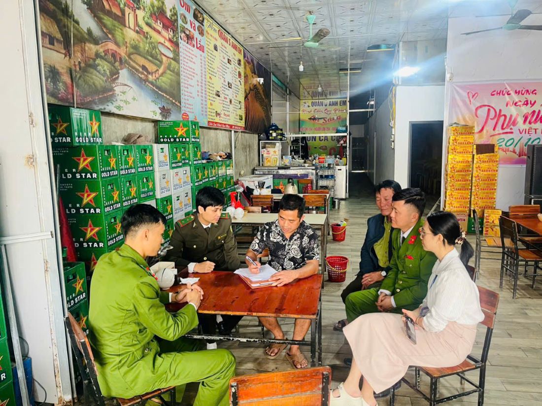 | Lực lượng chức năng tuyên truyền, tổ chức ký cam kết tại các nhà hàng, quán ăn |