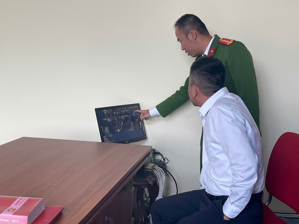 | Công an xã kiểm tra hệ thống camera an ninh |