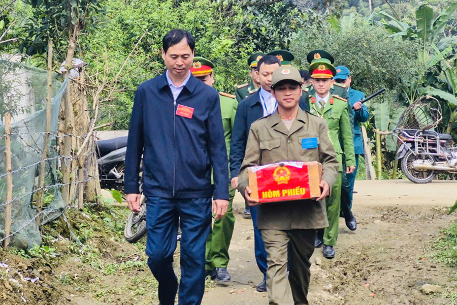 Điểm bầu cử sớm của xã Môn Sơn là ba bản xa trung tâm, đường sá đi lại khó khăn. Công an xã bố trí lực lượng trực tại điểm bỏ phiếu, bảo đảm an ninh, an toàn cho hoạt động bầu cử; đồng thời hướng dẫn, hỗ trợ Nhân dân tham gia bỏ phiếu đúng quy định.