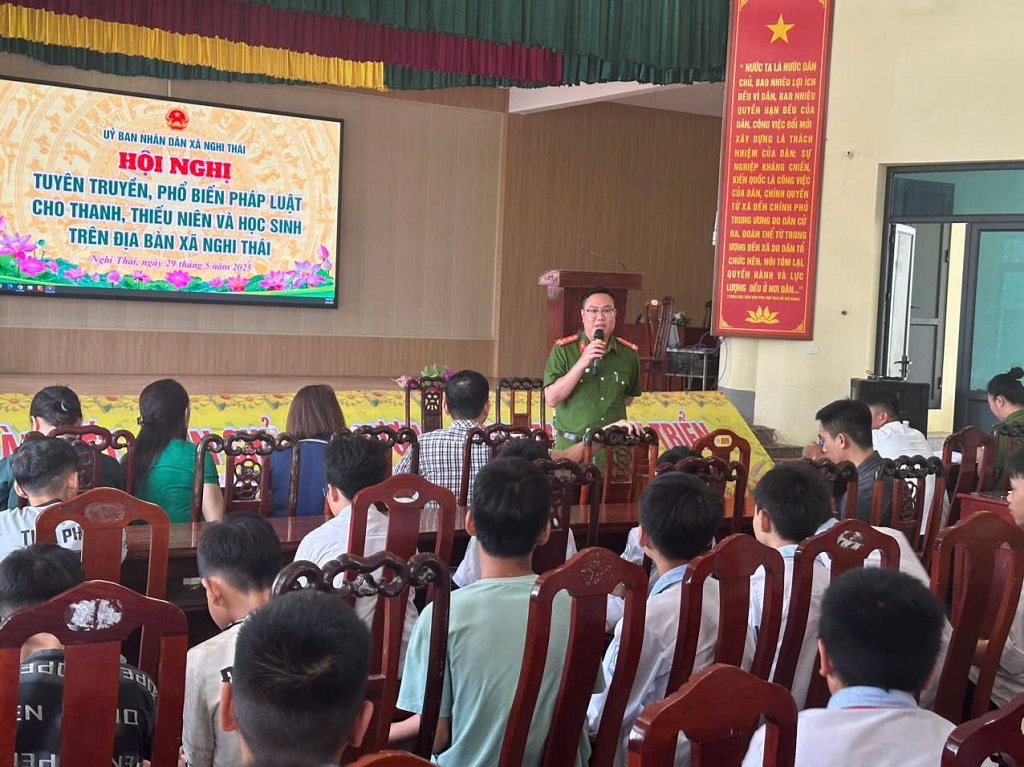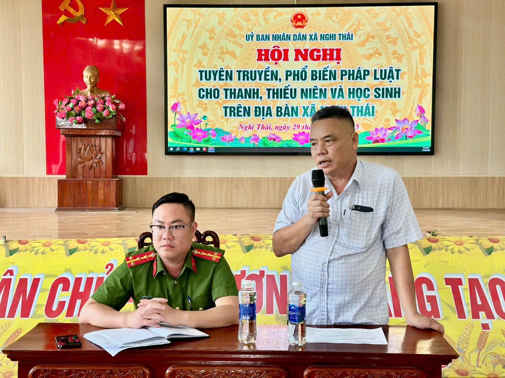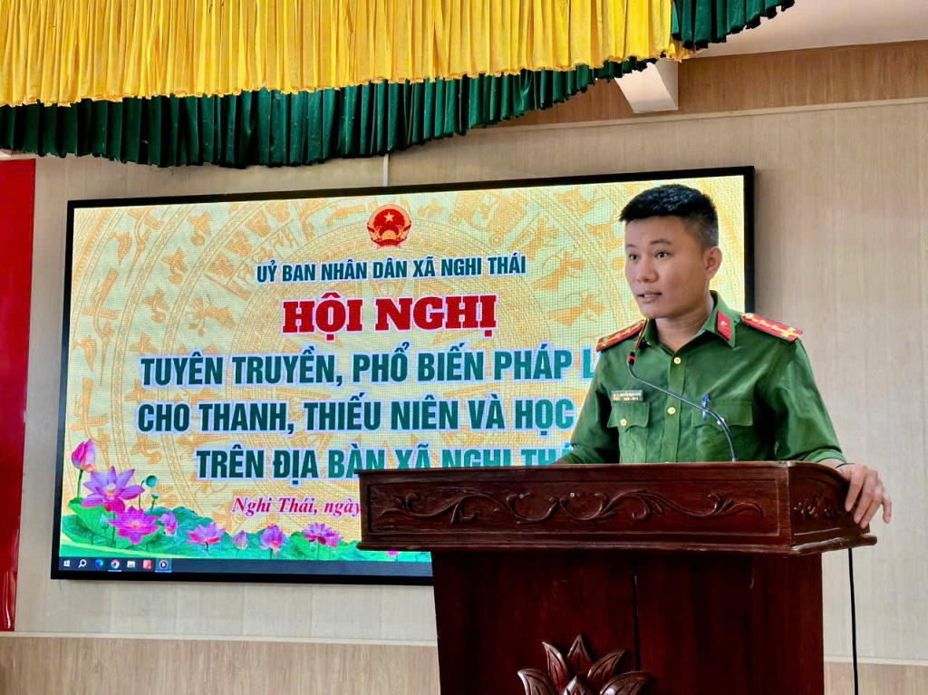 (Congan.nghean.gov.vn)-Nhằm tăng cường tuyên truyền, phổ biến giáo dục pháp luật, góp phần nâng cao ý thức chấp hành pháp luật trong học đường, đặc biệt là với những học sinh có biểu hiện cá biệt, vi phạm nội quy, vừa qua, UBND xã Nghi Thái tổ chức Hội nghị tuyên truyền, phổ biến pháp luật cho thanh, thiếu niên và học sinh trên địa bàn.