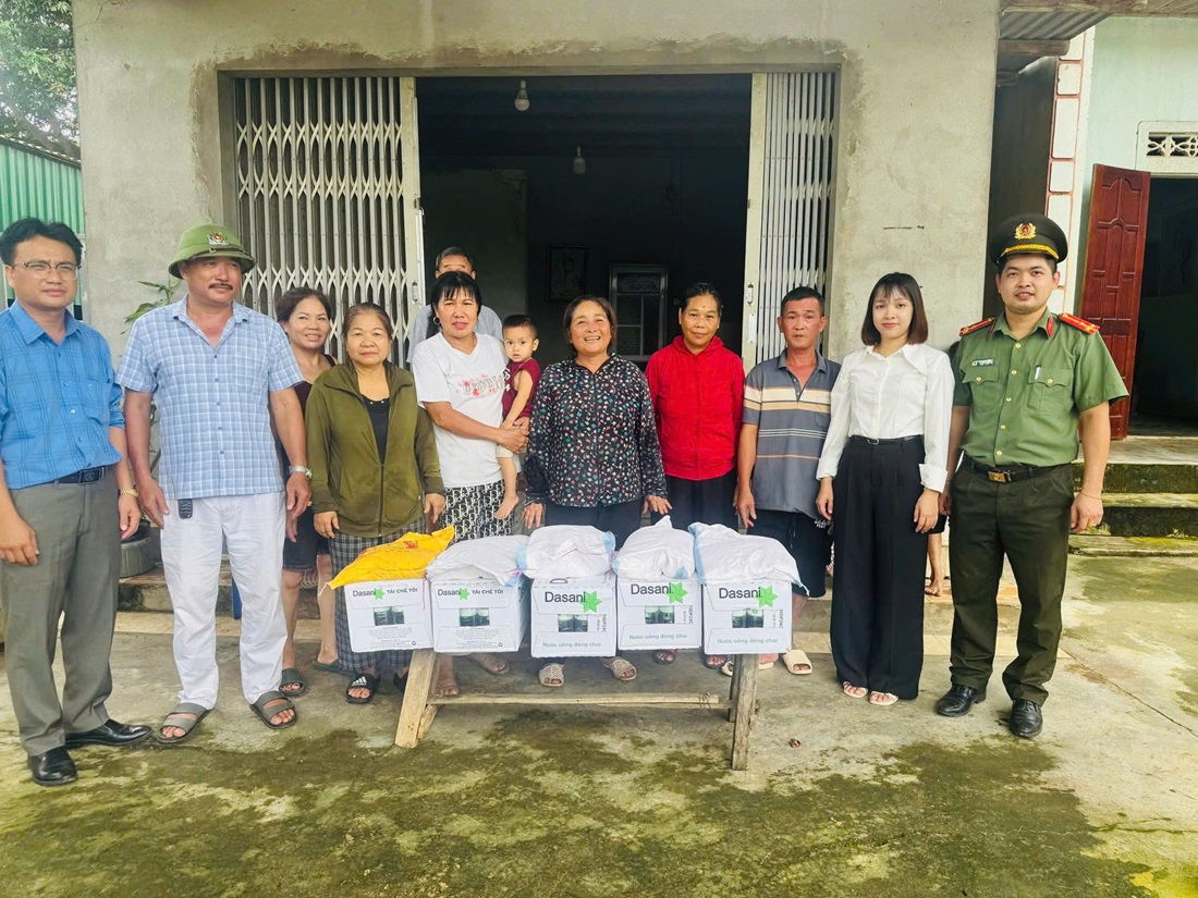 | Công an xã Châu Bình đến thăm hỏi, động viên các gia đình bị thiệt hại do ngập lụt sau bão |