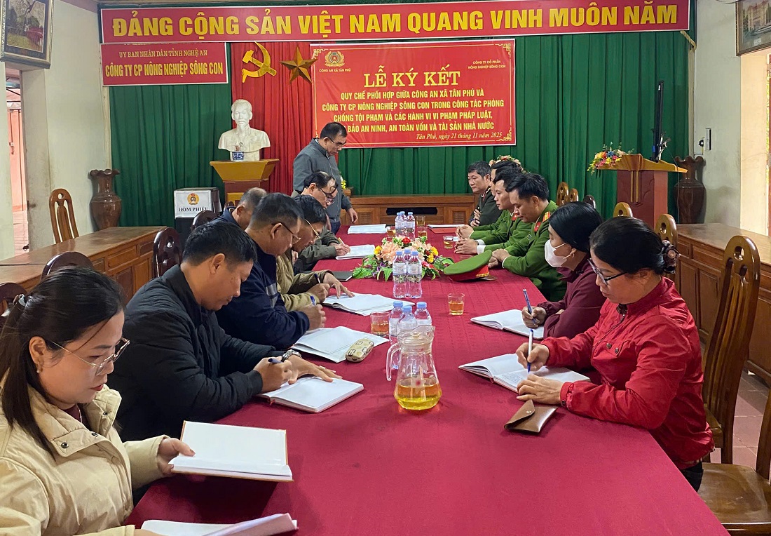 (Congan.nghean.gov.vn)-Vừa qua, Công an xã Tân Phú và Công ty Cổ phần Nông nghiệp Sông Con đã ký kết phối hợp bảo đảm ANTT giữa hai đơn vị.