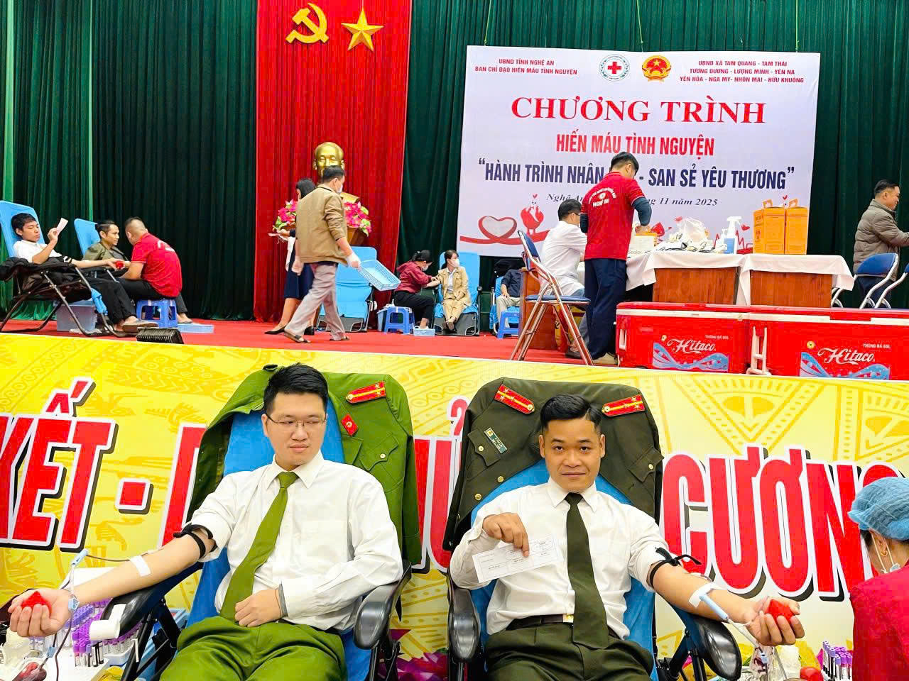 (Congan.nghean.gov.vn)-Thực hiện lời kêu gọi của Ban Chỉ đạo vận động hiến máu tình nguyện và hưởng ứng chương trình “Hành trình nhân đạo - san sẻ yêu thương”, sáng 25/11/2025, Công an các xã: Yên Hòa, Tương Dương tham gia hoạt động hiến máu với tinh thần trách nhiệm, nhân ái vì cộng đồng.