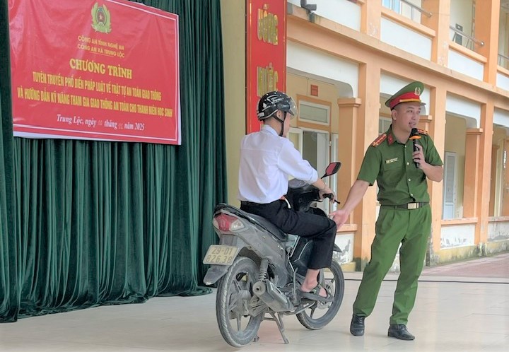 (Congan.nghean.gov.vn)-Ngày 17/11/2025, Công an xã Trung Lộc chủ trì, phối hợp Trường THPT Nghi Lộc 4, xã Trung Lộc tổ chức Chương trình tuyên truyền, thực hành kỹ năng lái xe gắn máy an toàn cho học sinh THPT Nghi Lộc 4.