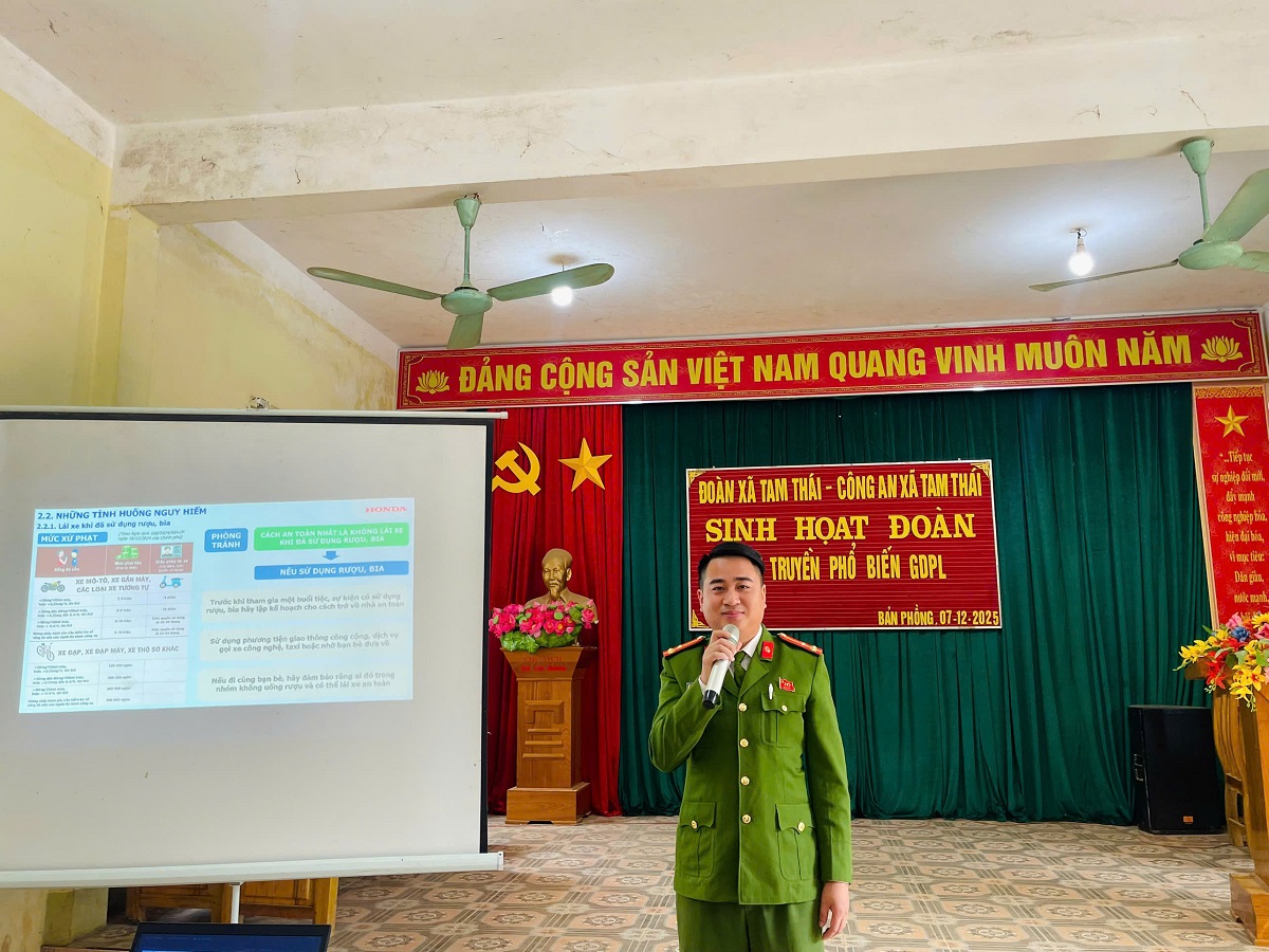 (Congan.nghean.gov.vn)-Sáng 07/12/2025, Công an xã Tam Thái phối hợp Đoàn Thanh niên xã tổ chức buổi sinh hoạt Đoàn với nội dung tuyên truyền, nâng cao nhận thức pháp luật cho đoàn viên, thanh niên.