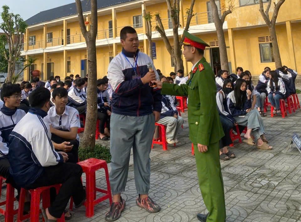 Công an xã đã sử dụng hình thức sinh động, dễ hiểu, lồng ghép câu hỏi – đáp có phần thưởng; nhiều tình huống thực tế tạo không khí sôi nổi, thu hút sự quan tâm của học sinh. Qua đó, giúp các em nắm vững kiến thức pháp luật và hình thành kỹ năng xử lý tình huống một cách chủ động.