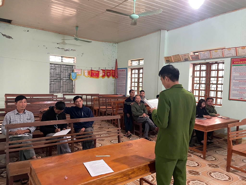Tại buổi tuyên truyền, Công an xã phổ biến quy định pháp luật liên quan đến bảo vệ động vật hoang dã, bảo vệ nguồn lợi thủy sản. Đồng thời, tổ chức ký cam kết thực hiện các nội dung sau: tuyên truyền, phổ biến pháp luật đến toàn thể hộ dân trong xóm, bản về bảo vệ động vật hoang dã, chim di cư, bảo vệ nguồn lợi thủy sản; xây dựng nếp sống văn hóa không săn bắn, không tiêu thụ động vật hoang dã, chim di cư; không sử dụng các phương tiện khai thác thủy sản bị cấm; phối hợp chặt chẽ với Công an xã trong kiểm tra, ngăn chặn, phát hiện và xử lý vi phạm.
