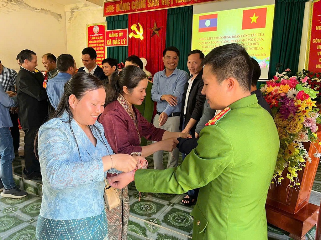 (Congan.nghean.gov.vn)-Trong không khí những ngày đầu xuân năm mới, xã Bắc Lý, tỉnh Nghệ An (Việt Nam) vinh dự đón tiếp Đoàn công tác cụm bản Loọng Cắng, nước CHDCND Lào sang thăm, chúc Tết và giao lưu hữu nghị với cấp ủy, chính quyền và Nhân dân địa phương. Chuyến thăm không chỉ mang ý nghĩa chúc mừng năm mới mà còn là dịp thắt chặt hơn nữa mối quan hệ đoàn kết, gắn bó keo sơn giữa bản làng khu vực biên giới Việt - Lào.