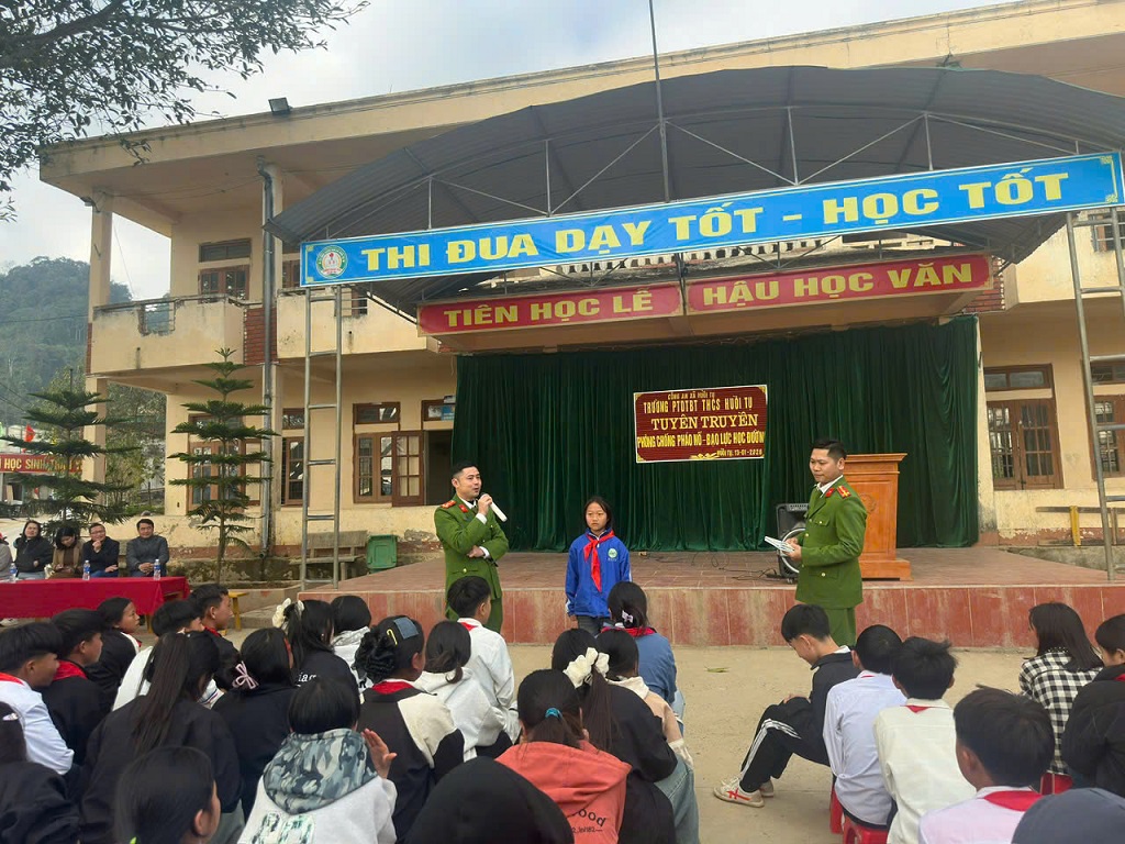 Bên cạnh đó, chuyên đề phòng, chống bạo lực học đường được triển khai với nội dung cụ thể, dễ hiểu, sát với thực tiễn lứa tuổi học sinh vùng cao. Thông qua tình huống thực tế, Công an xã giúp học sinh nhận diện hành vi bạo lực học đường dưới nhiều hình thức như: bạo lực thể chất, tinh thần, bắt nạt trên không gian mạng…; đồng thời phân tích nguyên nhân, hậu quả, trách nhiệm pháp lý và trách nhiệm đạo đức của người vi phạm. Qua đó, hướng dẫn các em kỹ năng phòng ngừa, tự bảo vệ bản thân, biết cách ứng xử văn hóa, đoàn kết, tương trợ lẫn nhau trong học tập và sinh hoạt.