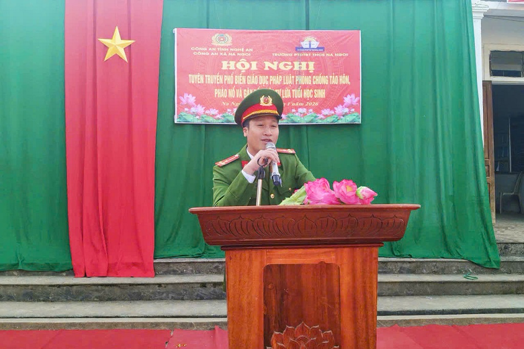(Congan.nghean.gov.vn)-Ngày 12/01/2026, Công an xã Na Ngoi tổ chức buổi tuyên truyền, phổ biến giáo dục pháp luật tại Trường PTDTBT THCS Na Ngoi.