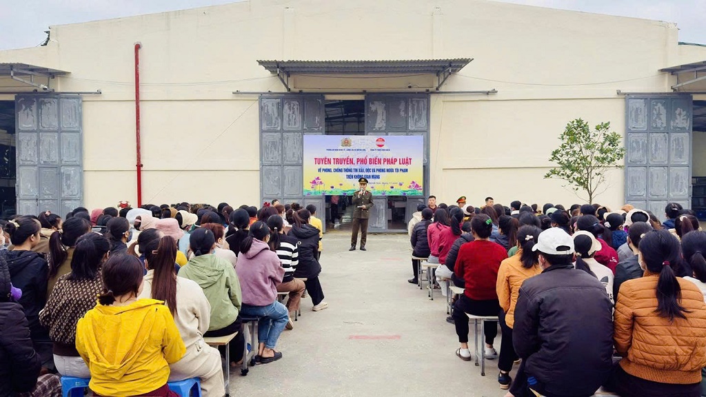 (Congan.nghean.gov.vn)-Vừa qua, Công an xã Quỳnh Sơn phối hợp với Phòng An ninh kinh tế và Công ty TNHH EverGold tổ chức buổi tuyên truyền, phổ biến pháp luật về phòng, chống thông tin xấu độc và phòng ngừa tội phạm trên không gian mạng cho công nhân.