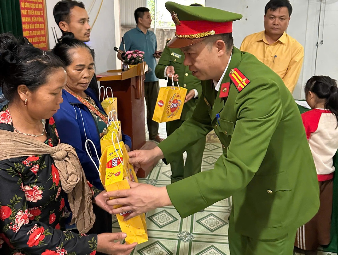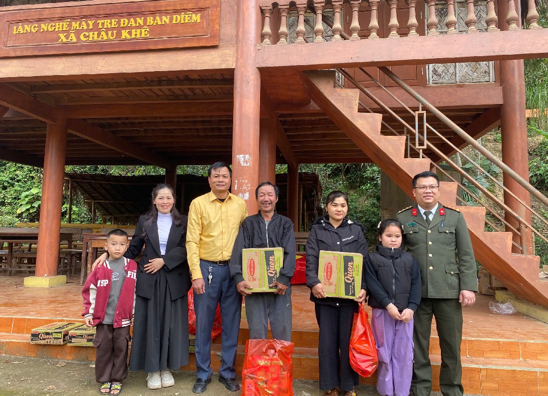 Ngay sau khi nhận sự ủng hộ từ nhà hảo tâm, Công an xã phối hợp với Ủy ban MTTQ xã tổ chức thăm hỏi, động viên và trao 20 suất quà đến hộ gia đình tại bản Diềm, với tổng trị giá 20 triệu đồng.