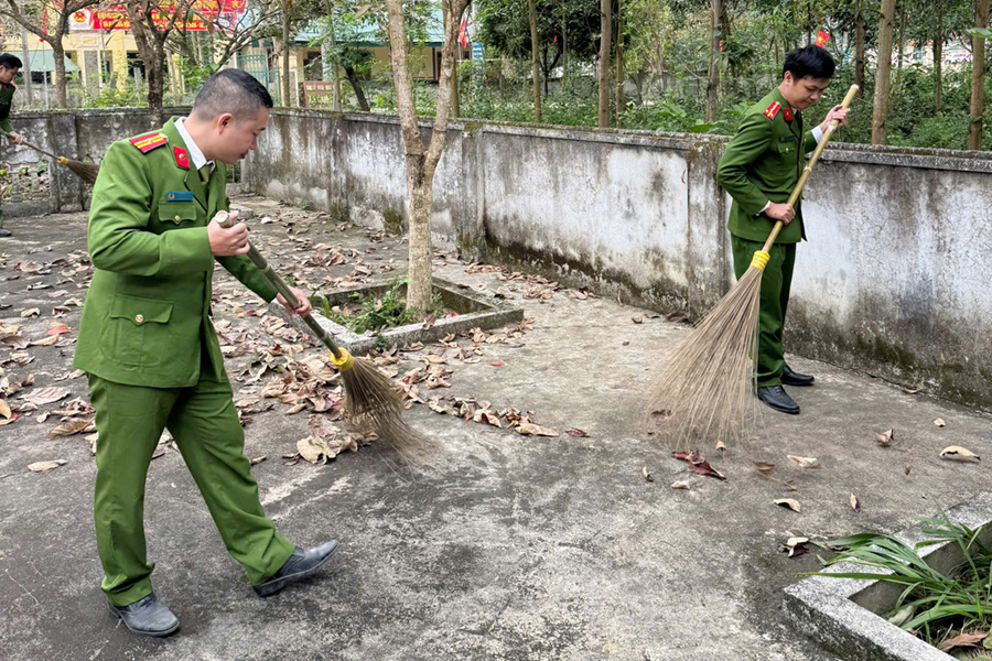 Đây là hoạt động ý nghĩa hướng đến kỷ niệm 95 năm Ngày thành lập Đoàn Thanh niên Cộng sản Hồ Chí Minh (26/3/1931-26/3/2026). Đoàn viên thanh niên Công an xã dọn dẹp cây cỏ xung quanh khuôn viên nghĩa trang, đồng thời tiến hành dâng hoa và thắp hương tại đài tưởng niệm.