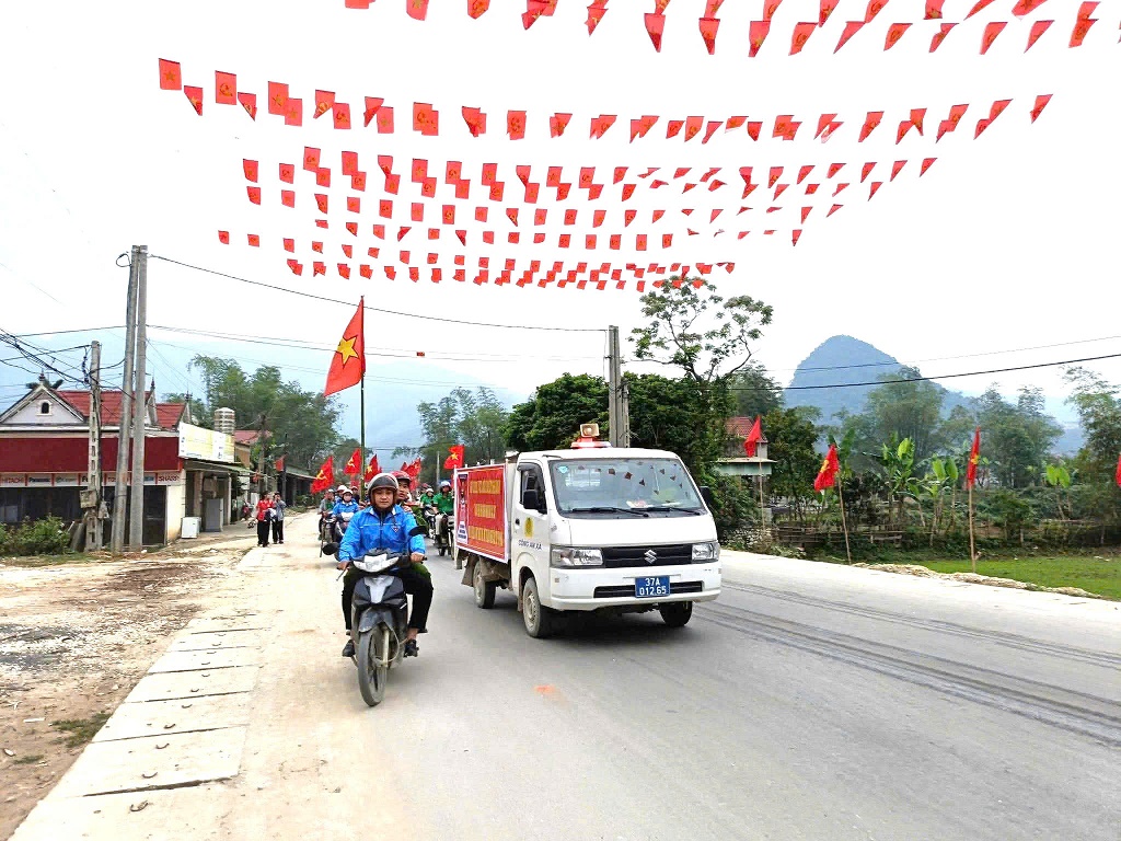 (Congan.nghean.gov.vn)-Vừa qua, Công an xã Châu Hồng tổ chức tuyên truyền bằng xe lưu động hướng tới ngày bầu cử về cuộc bầu cử đại biểu Quốc hội khóa XVI và đại biểu HĐND các cấp nhiệm kỳ 2026 - 2031.