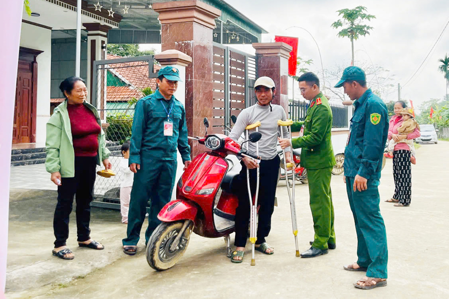 | Công an xã hỗ trợ người gặp khó khăn trong đi lại tham gia bầu cử |