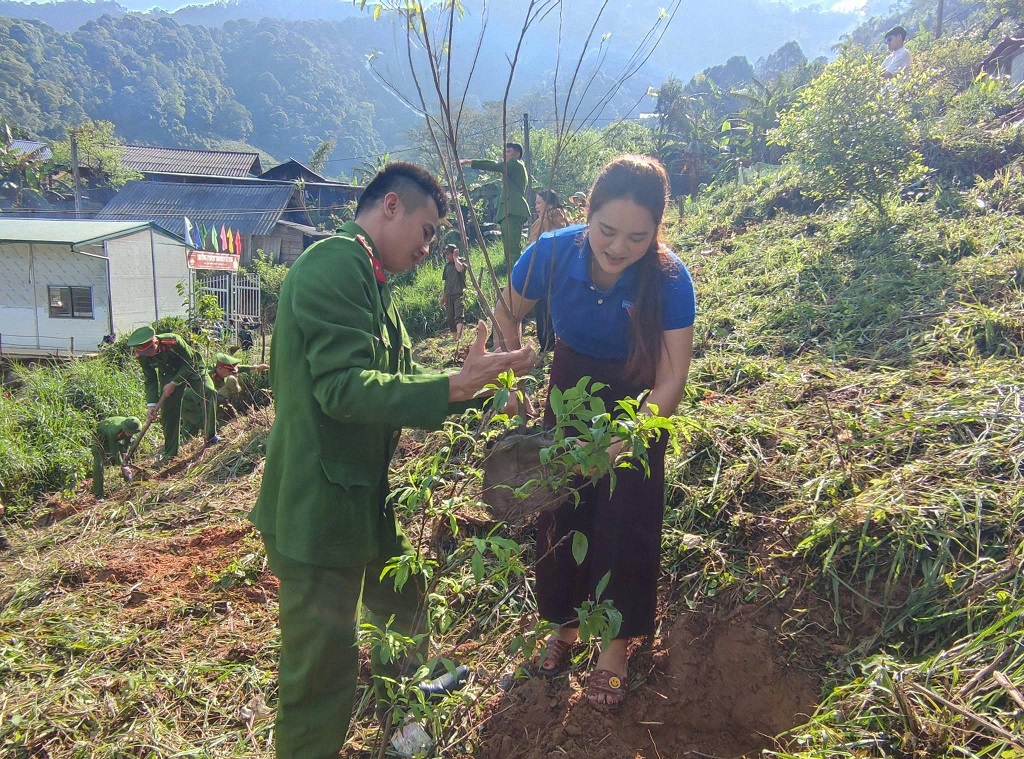 Hoạt động có sự tham gia của đoàn viên, thanh niên Công an xã, góp phần tạo cảnh quan xanh - sạch - đẹp, xây dựng môi trường học tập thân thiện, an toàn. Đoàn viên, thanh niên Chi đoàn Công an xã chuẩn bị chu đáo từ khâu lựa chọn cây giống, cải tạo đất đến tổ chức trồng và phối hợp nhà trường chăm sóc, bảo vệ cây.