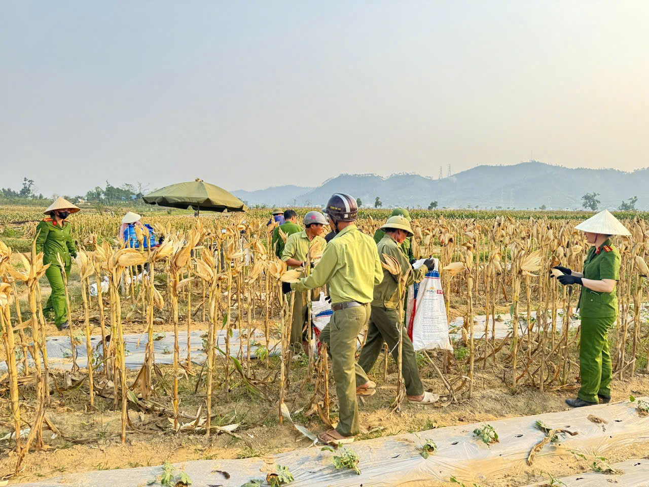 Mặc dù thời tiết nắng nóng gay gắt, nhiệt độ ngoài trời có thời điểm lên tới 40 độ, đoàn viên Chi đoàn và hội viên Chi hội Phụ nữ Công an xã vẫn nhiệt tình có mặt tại ruộng ngô, tích cực hỗ trợ gia đình thu hoạch kịp thời, góp phần giảm bớt khó khăn, giúp gia đình ổn định cuộc sống.
