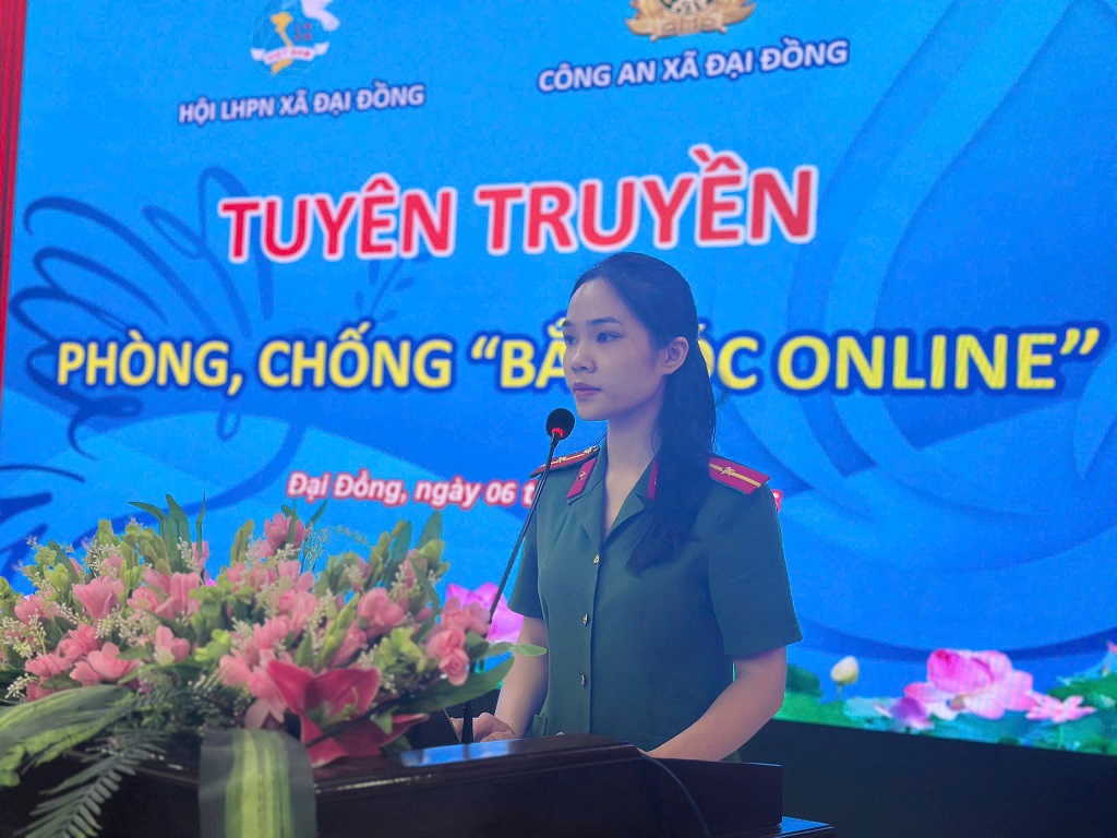 (Congan.nghean.gov.vn)-Sáng 06/4/2026, tại Hội trường UBND xã Đại Đồng, Công an xã phối hợp với Hội Liên hiệp Phụ nữ xã tổ chức buổi tuyên truyền với chủ đề “Phòng, chống bắt cóc online” cho Chi hội Phụ nữ của 50 thôn.