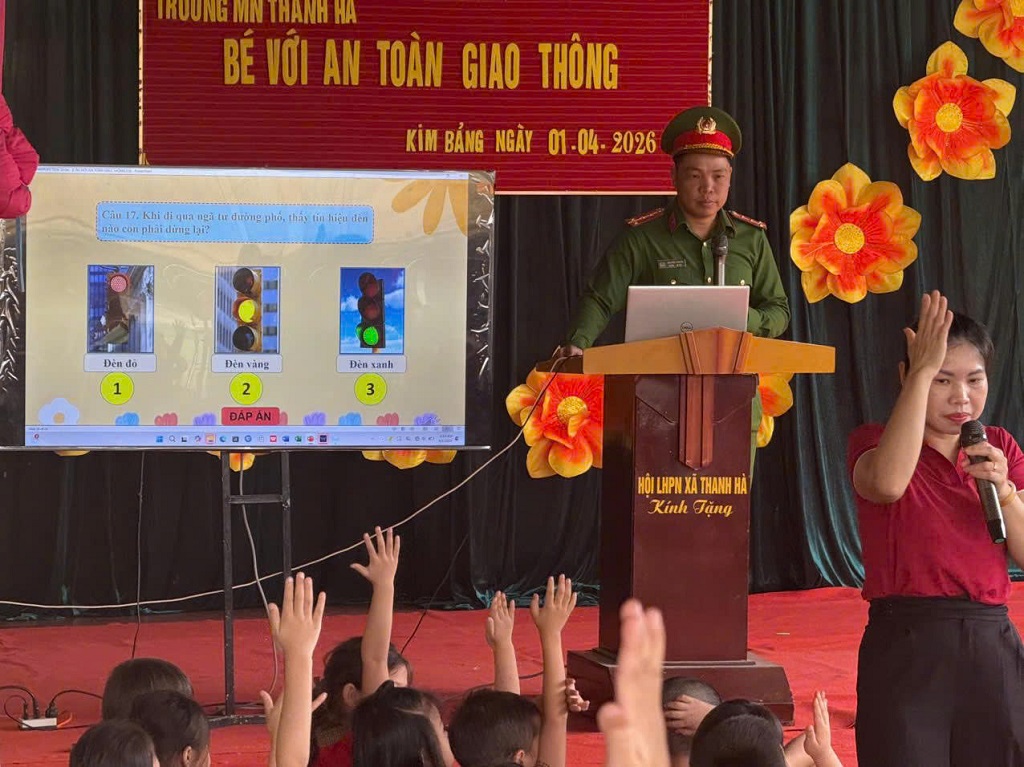 Đặc biệt, trong quá trình diễn ra Hội thi, Công an xã trực tiếp tuyên truyền, hướng dẫn kỹ năng tham gia giao thông an toàn, đồng thời nhấn mạnh vai trò của gia đình và nhà trường trong việc giáo dục, hình thành thói quen tốt cho trẻ nhỏ.
