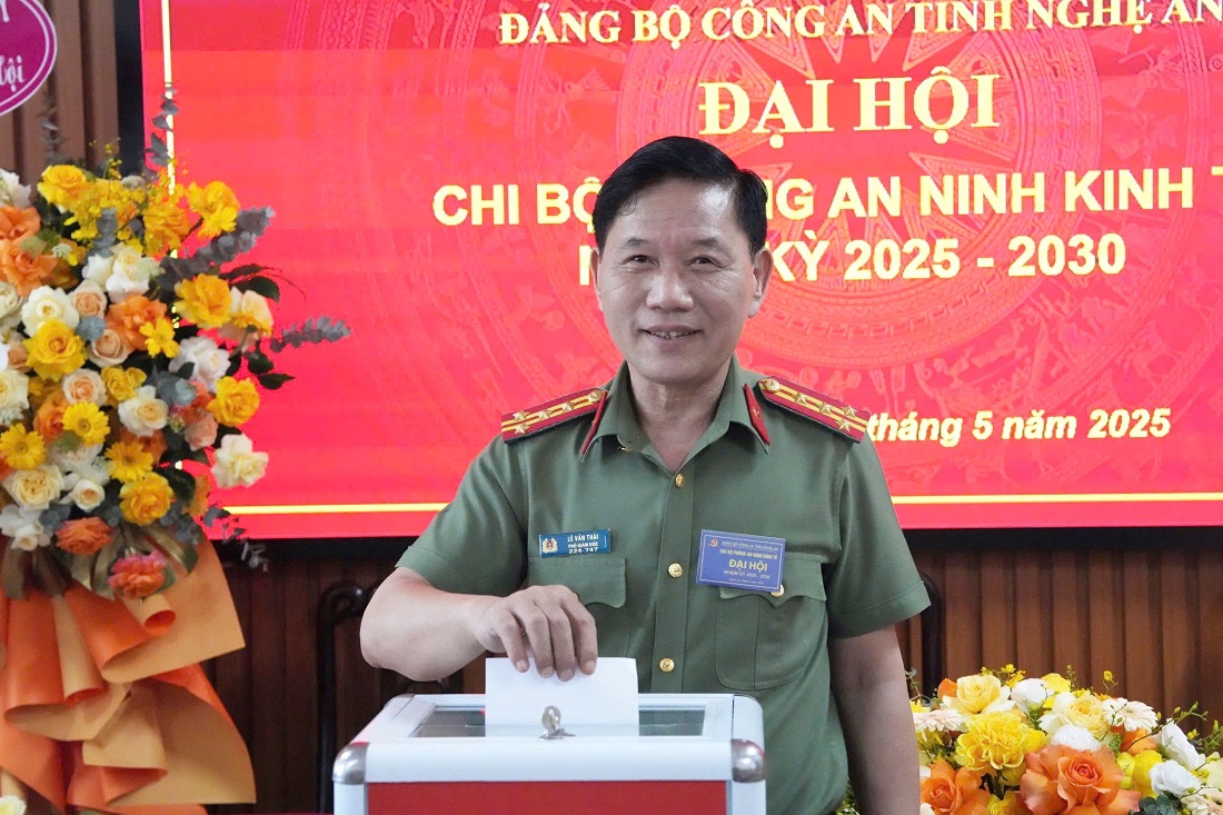 (Congan.nghean.gov.vn)-Sáng 21/5, Phòng An ninh kinh tế tổ chức Đại hội Chi bộ nhiệm kỳ 2025-2030. Đồng chí Đại tá Lê Văn Thái, Phó Giám đốc Công an tỉnh dự và chỉ đạo Đại hội. Tham dự có đại diện lãnh đạo các phòng chức năng Công an tỉnh.